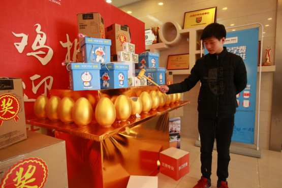 在眾多參觀咨詢者中,來自河南信陽的16歲男孩汪可在經(jīng)過一番了解后,當(dāng)場決定報名金牌大廚二年制專業(yè),成為年后上海新東方第一個報名的學(xué)生。在新年熱鬧的氣氛中,汪可成功砸出第一個金蛋,贏得三等獎VR頭盔一個。