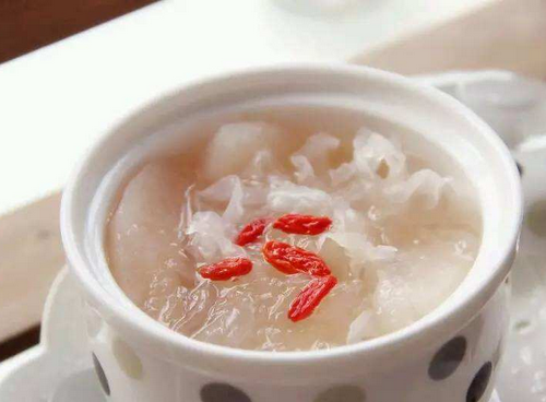 9:枸杞燕窩湯:枸杞20克,燕窩10克,冰糖20克。將燕窩用溫水發(fā)透,用鑷子夾去燕毛,撕成條狀,然后和枸杞一起放入鍋內(nèi),加適量的水大火燒沸,再用文火燉30分鐘,加入冰糖即成。此湯補腎明目,適合于視物不清者。