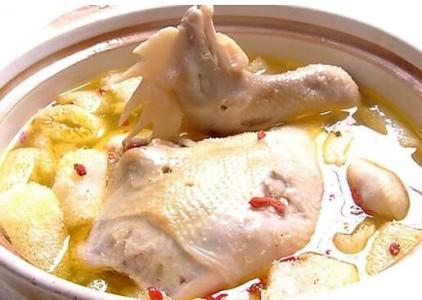 五、按以上步驟處理干凈的雞不用飛水,可直接入沙鍋,加一塊姜、適量水,大火燒開,調(diào)中火去除表面的浮沫,加兩勺料酒和步驟1的竹蓀,水再開后調(diào)小火煲1.5至2小時,調(diào)少量鹽即可關(guān)火。
