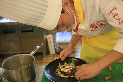 在“丘比杯”第四屆中國新東方烹飪技能大賽中,安徽新東方承辦的本次大賽較往年最大改變是個人組和團體組比賽中各增加了“西餐熱菜”這一賽項,這在一貫只重視中餐烹飪技法交流和考核的此項賽事中,還是首次設立。比賽要求每位參賽選手在90分鐘內(nèi)完成一道開胃菜 、一道西式主菜和一道西式湯菜共三道自選菜品的制作。