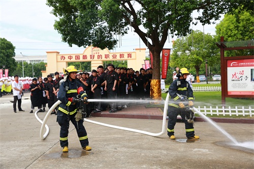 隨后消防官兵向我校學(xué)員演示了滅火器滅火的教程,看完后學(xué)生們躍躍欲試,而主持人則邀請每個班級的班長走上前來,進(jìn)行滅火體驗,同時要求每位班長把自身感受和對防火滅火知識的理解傳達(dá)給每一位同學(xué)。而后消防官兵還進(jìn)行了消防水帶的滅火演示。