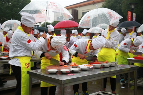 雖然天公不作美,下起了蒙蒙細(xì)雨,但學(xué)員們并未因此而怨聲載道,真正的廚師敢于直面眼前的困難,從他們整齊劃一的步伐中,可以看出上海新東方學(xué)子良好的身體素質(zhì)和精神面貌。
