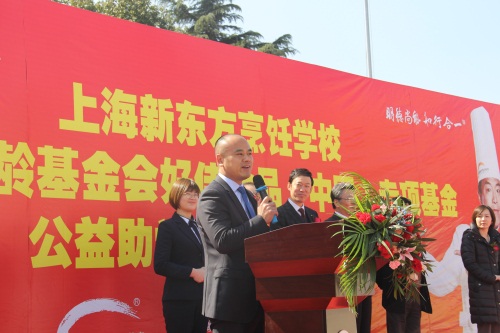 上海宋慶齡基金會(huì)代秘書長(zhǎng)賈勇先生致辭,他表示此項(xiàng)公益助學(xué)專項(xiàng)基金的成立是上海宋慶齡基金會(huì)、好侍食品(中國(guó))投資有限公司和上海新東方烹飪學(xué)校強(qiáng)強(qiáng)聯(lián)合、優(yōu)勢(shì)互補(bǔ)的結(jié)果。自十九大召開(kāi)以來(lái),習(xí)近平總書記強(qiáng)調(diào),我國(guó)主要矛盾已經(jīng)轉(zhuǎn)化為人民日益增長(zhǎng)的美好生活需要和不平衡不充分的發(fā)展之間的矛盾。賈勇先生言稱,公益是為了實(shí)現(xiàn)美好生活,教育同樣是實(shí)現(xiàn)人們美好生活的重中之重,上海新東方烹飪學(xué)校的權(quán)威性及專業(yè)化程度為業(yè)內(nèi)外人士所認(rèn)可,是職教的忠實(shí)踐行者和領(lǐng)路人。賈勇先生鼓勵(lì)我校學(xué)子為老百姓做出更美好的味道,做出讓世界敬服的中國(guó)味道!