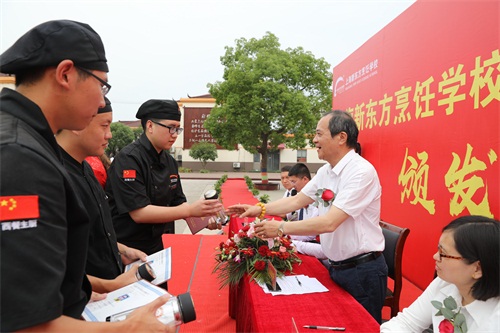 接下來(lái)我校領(lǐng)導(dǎo)莊嚴(yán)地為各位培訓(xùn)合格的同學(xué)們頒發(fā)了行政總廚資格證書(shū),并進(jìn)行合影留念。