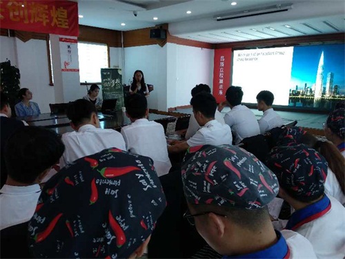 華潤(rùn)萬家人事經(jīng)理陳經(jīng)理向?qū)W生展示了華潤(rùn)萬家的企業(yè)風(fēng)采,熱切希望我們的學(xué)子加入到該企業(yè),成為餐飲界的一顆新星!