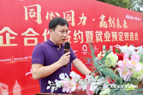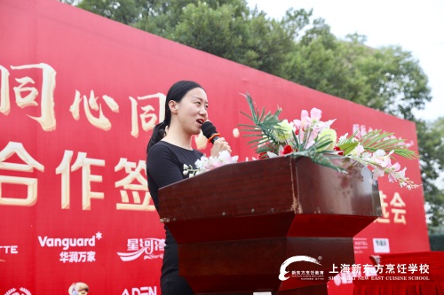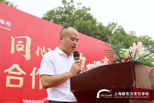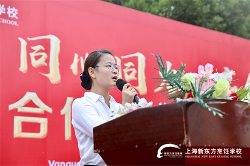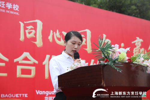 10點20分,上海新東方烹飪學(xué)校教務(wù)馬主任發(fā)言,在感謝合作企業(yè)對我校信任并提供就業(yè)平臺的同時,殷切期望我校同學(xué)們追求精益求精的工匠精神,成為更優(yōu)秀的餐飲人才。