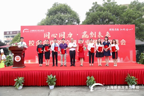 10點45分,上海新東方烹飪學(xué)校曹校長與簽約企業(yè)代表上臺合影留念。校企合作開幕式結(jié)束。