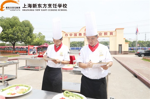 炫技大賽是上海新東方烹飪學(xué)校階段性檢驗(yàn)學(xué)員們學(xué)習(xí)成果的測(cè)評(píng)方式,如今天舉辦的刀工大賽,評(píng)委老師們就將從站案、操刀、運(yùn)刀、手法、保健等方面綜合打分,公平、公正、公開地進(jìn)行考評(píng)!