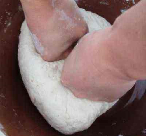 (3)揉面時(shí)要用“巧勁”,即要用力,又要揉“活”。必須手腕著力,而且力度要適當(dāng)。