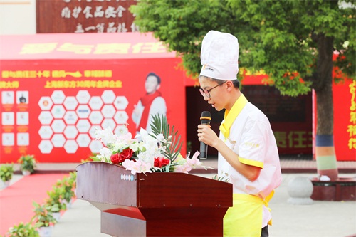 最后,上海新東方烹飪學(xué)校曹校長(zhǎng)上臺(tái)致詞,他代表學(xué)校向老師們、同學(xué)們致以新學(xué)期的美好祝愿;向承載著父母囑托,胸懷成人成才志向的新生表示熱烈的歡迎;向所有致力于傳道授業(yè)教書育人,致力于神圣的教育事業(yè)的老師們表示衷心的感謝!