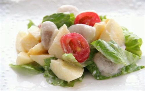 用山竹、番茄、蘋果、生菜和沙拉醬