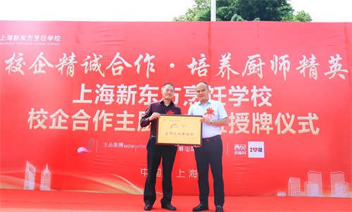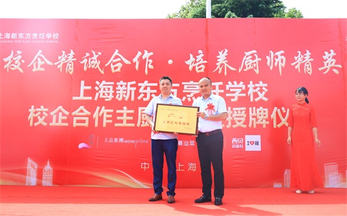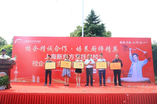 隨著曹校長的演講結(jié)束,在眾多企業(yè)和廣大師生的見證下,曹校長和各企業(yè)代表依次上臺,為2018年上海新東方“主廚”定向班正式授牌。