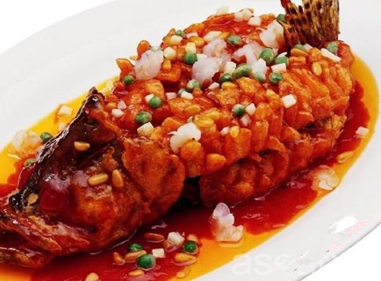 脆熘的方法除特殊不需掛糊的菜肴原料外,主要體現(xiàn)在原料掛糊、拍粉、經(jīng)熱油炸制使原料脫水變脆上,原料經(jīng)炸后表層脆硬度應(yīng)適當(dāng)。脆熘對糊的要求比較嚴(yán)格,先制糊。再拖勻原料表層,糊的原料一般為淀粉加水或適量面粉調(diào)制,為了達(dá)到酥脆特點(diǎn),往往要加入適量油脂調(diào)勻。掛糊或拍粉都要均勻。下料時以熱油下料定型、溫油使原料成熟,再重油復(fù)炸,突出原料質(zhì)感特點(diǎn)。脆熘的芡汁以裹附均勻為度,不可過稀過稠,其中熱油對調(diào)味芡汁的風(fēng)味特點(diǎn)等方面其到了重要作用。脆熘菜肴的口味一般有兩類,一種是甜酸味濃型,另一種是咸鮮帶酸型,都突出了醋的香味,使菜肴的復(fù)合口味的風(fēng)味特點(diǎn)突出。脆熘的代表菜例有:咕口老肉、松鼠桂魚、菊花魚、焦熘里脊等。