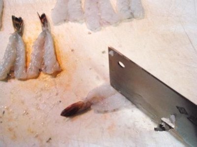 適宜原料:這種刀法適宜加工脆性原料,如白菜、蔥、姜、蒜等。對韌性原料,如豬、羊肉、蝦子肉等也適用剁法加工。