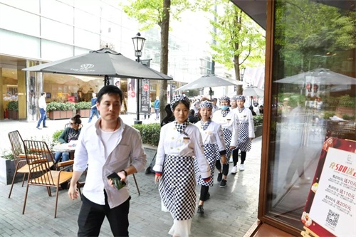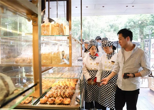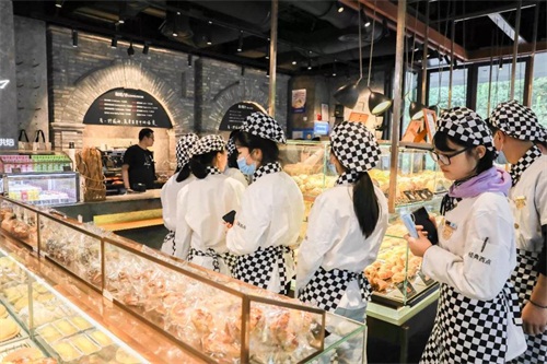抵達(dá)新天地后,哈肯鋪稅總和曹總廚聯(lián)袂出店迎接,并為同學(xué)們簡要介紹了哈肯鋪的發(fā)展歷程及取得的光輝成績,至此同學(xué)們對哈肯鋪在西點行業(yè)的地位有了初步的印象和了解。