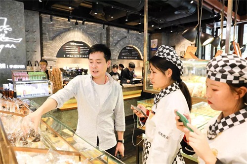隨同稅總和曹總廚一起進(jìn)店,麥香撲鼻而來,同學(xué)們立刻被造型精致的各種類型、口味的面包所吸引,作為西點學(xué)員,她們不僅對制作西點興趣盎然,也是一個個小吃貨哦!哈肯鋪的裝修風(fēng)格也比較偏向于暖色系,在陽光正好的午后,哈肯鋪的一份面包+咖啡,想想就萬分期待叻!