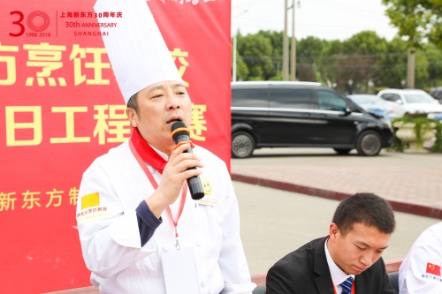 今天的比賽是團(tuán)體翻鍋,以班級為單位,考察翻鍋的動作、整齊度、力度和整體的氣勢以及團(tuán)體的儀容儀表、精神狀態(tài)等。上海新東方烹飪學(xué)校周雷周主管作為本次比賽的評委,為各位參賽的同學(xué)們詳細(xì)地講解了比賽的規(guī)則。周雷老師希望大家在比賽中能賽出自我、賽出水平,同時也預(yù)祝本次活動圓滿成功。