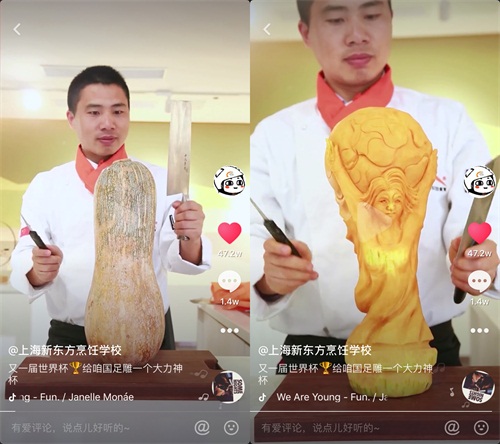 此前,上海新東方烹飪學(xué)校周美香老師用南瓜雕刻的大力神杯,借此表達(dá)對(duì)國(guó)足的激勵(lì),收獲了2000多萬(wàn)的播放量,全國(guó)網(wǎng)友點(diǎn)贊不斷。