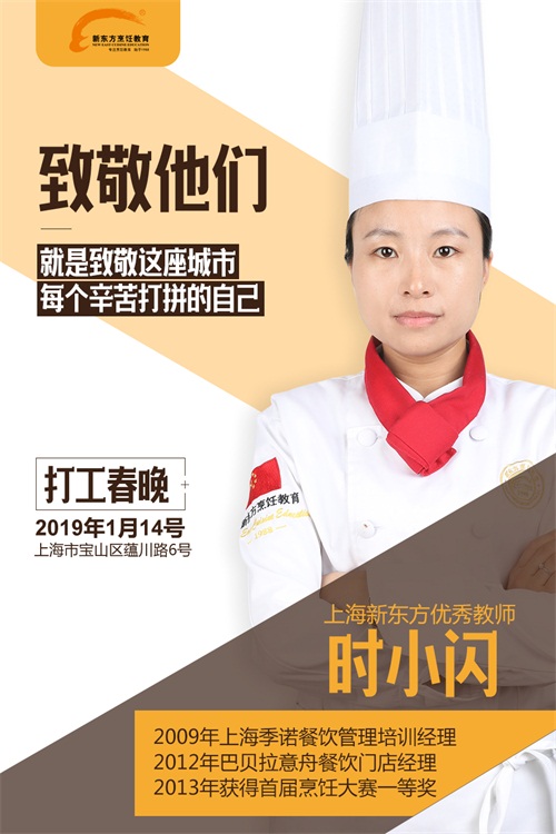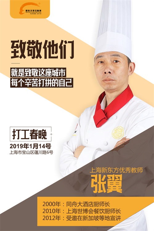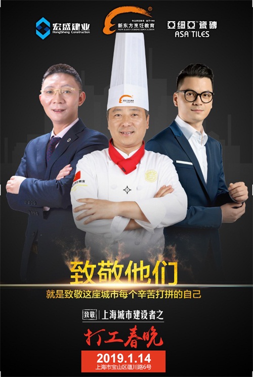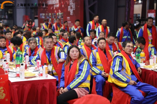 2019年1月14日晚,由上海新東方烹飪學(xué)校參與籌辦的“2019致敬上海城市建設(shè)者打工春晚”公益活動(dòng)隆重啟幕。千名建筑工人齊聚一堂,品嘗著美食與小吃,喝著老酒與飲料,欣賞著建筑工人們自編、自導(dǎo)、自演的精彩節(jié)目,現(xiàn)場(chǎng)一片喜慶與歡暢,恍若走進(jìn)了央視春晚現(xiàn)場(chǎng),讓人驚嘆連連。