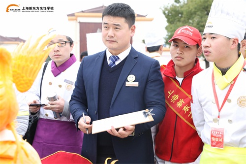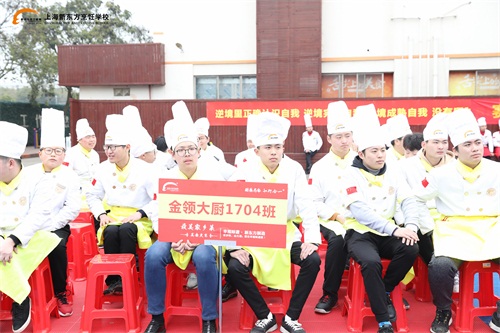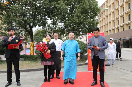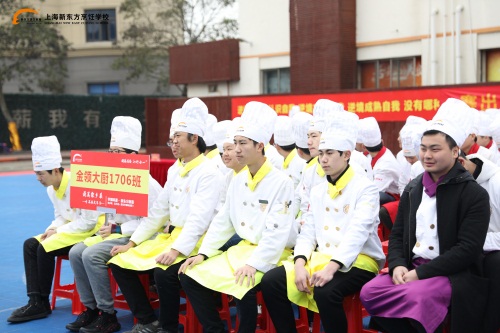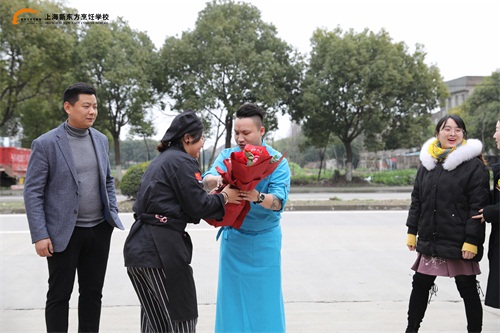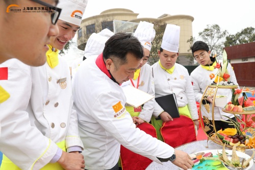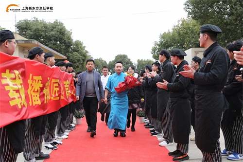 下午2點,趙勇到達(dá)上海新東方烹飪學(xué)校,同學(xué)們則排好了整齊的隊伍,掌聲歡迎他的到來。
