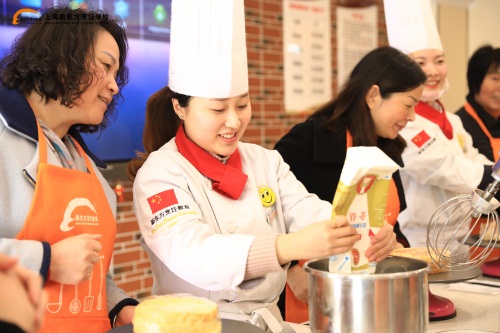 除了最美家鄉(xiāng)菜活動(dòng)外,今天上海新東方還迎來了上海市金山區(qū)朱涇鎮(zhèn)總工會(huì),為了迎接?jì)D女節(jié),工會(huì)特與我校聯(lián)系開辦拓展活動(dòng),拓展的內(nèi)容主要是學(xué)習(xí)制作西點(diǎn)水果蛋糕。