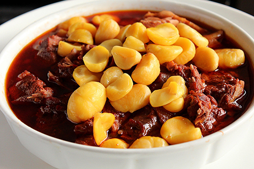 將栗子一切兩瓣,去殼后放入盆內(nèi),加開水浸泡一會兒后,用筷子攪拌,栗子的皮就會與栗肉脫離。浸泡時間不能過長,否則會影響栗子營養(yǎng)成分。