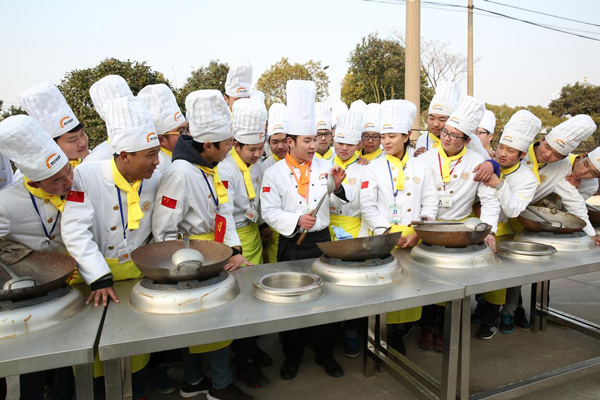 上海新東方烹飪學校學生切配練習