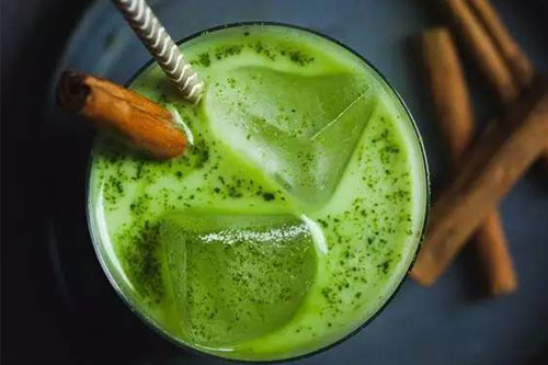 步驟六:想喝冷飲可以放入冰箱冰鎮(zhèn)10分鐘,還可以加入冰塊、西瓜等調(diào)制花式抹茶冰奶茶。