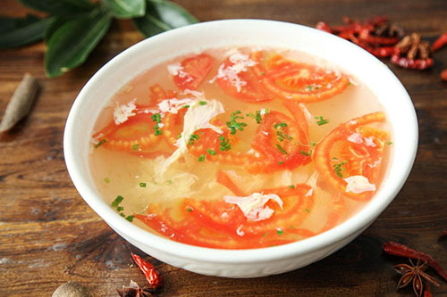 番茄曾被美國(guó)《時(shí)代》周刊推薦為十大健康食品之一。番茄含有豐富的番茄紅素,對(duì)健康大有益處。番茄煮熟以后,有機(jī)酸也跟著跑到水里,吃起來(lái)酸味很濃。既生津止渴,又開(kāi)胃消食。