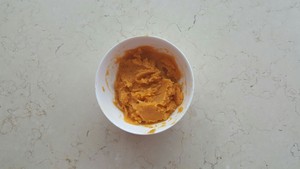 步驟一:將蒸熟的甘薯放至微溫?fù)v成泥,加奶油奶酪+糖+鹽+黃油,混和均勻。