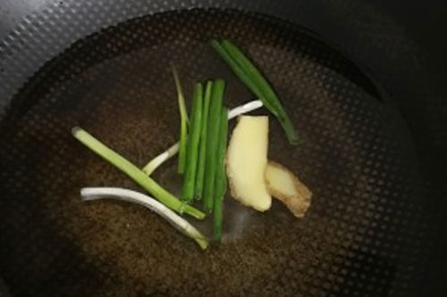步驟二:鍋中放水,放入小蔥段和姜片,將水燒開。