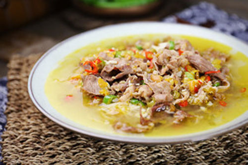 輔料:黃燈籠椒醬 3大匙、白胡椒粉 1茶匙、料酒 1/2湯匙、陳醋 1/2湯匙、鹽 1茶匙、食用油 適量