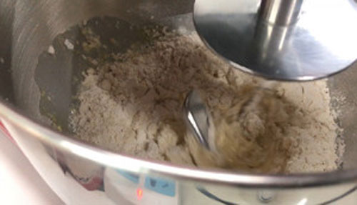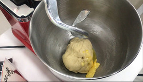 步驟二:10分鐘后加入黃油,繼續(xù)揉10分鐘。