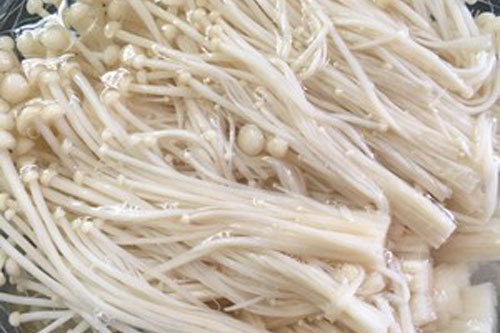 步驟三:撈出的金針菇過(guò)下冷水?dāng)[盤(pán)。