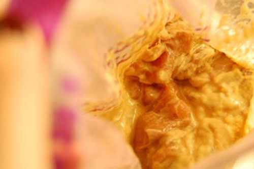 步驟三:雞肉塊放進1的醬汁里面拌勻,放進冰箱至少半小時左右入味。
