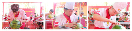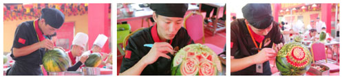 大賽正式開始,全校雕刻高手云集,各路英雄好漢將用西瓜雕刻出各式各樣的造型同時(shí)為西瓜插上藝術(shù)的翅膀。