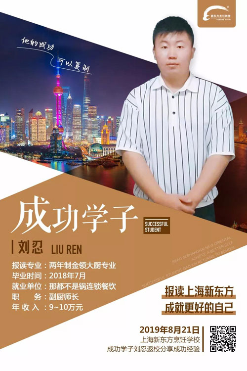 除此之外,我們還將邀請成功學(xué)子劉忍返校分享經(jīng)驗,作為我校金領(lǐng)大廚專業(yè)的畢業(yè)生,今年剛滿19歲的劉忍,已經(jīng)在那都不是鍋連鎖餐飲當(dāng)上了副廚師長,而去年7月份畢業(yè)的他,在工作崗位上剛滿1年,有的人的優(yōu)秀和天分你不得不承認,劉忍會分享怎樣的工作經(jīng)驗和工作感悟呢?讓我們拭目以待吧!