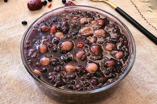 糯米 50克、黑米 50克、黑豆 50克、紅豆 50克、蓮子 20克、花生 30克、紅棗 10顆、冰糖 適量、枸杞 10幾粒