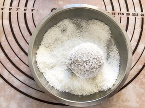 步驟四:放入蒸鍋中大火蒸10分鐘,下面墊上油紙,趁熱裹上椰蓉即可。