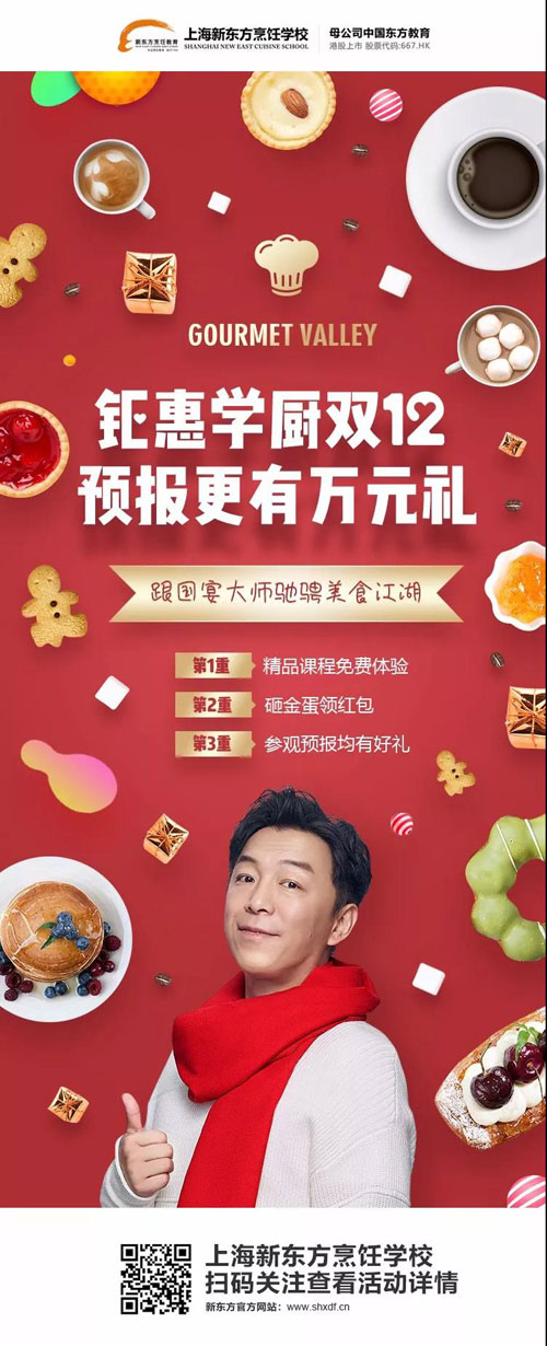 2019年12月7日-12日,凡到新東方烹飪教育上海院校參觀,即可免費體驗學習市場流行美食小吃等精品單品課程。