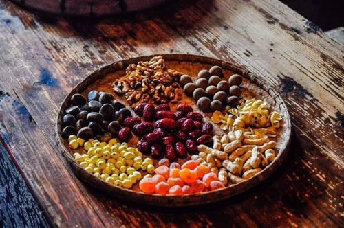 臘八粥除了用各種米類、豆類的谷物熬粥之外,還會(huì)加入干果、豆腐以及肉混合熬煮。若是在午間食用,還要在粥內(nèi)煮上面條,全家人團(tuán)聚共餐。