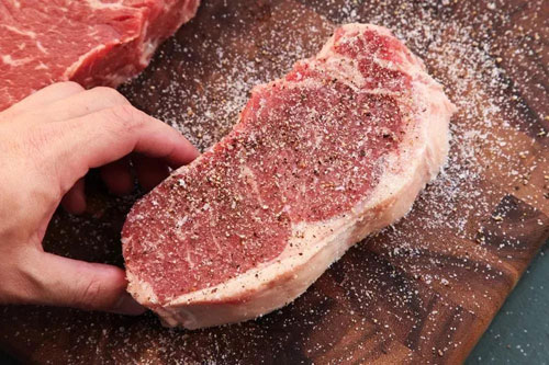 牛排達(dá)到室溫再下鍋,撒少許鹽和胡椒調(diào)味