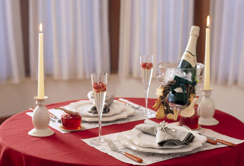 刀叉的數(shù)目一般擺三套,即小吃刀叉、魚刀叉、熱菜刀叉。湯勺放在吃盤右側(cè),即小吃刀叉與魚刀叉之間。果刀橫放在吃盤前,刀柄向右,刀刃向里。茶勺與點(diǎn)心叉交叉放在果刀上。面包盤放在盤左,叉子外。黃油刀放在面包盤右上方。五味、牙簽筒、口紙杯等,每隔一定距離,擺放一套,讓食者取用方便。