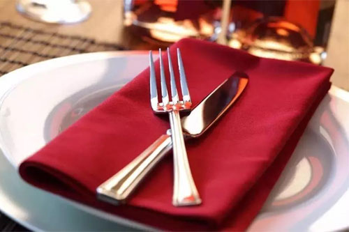 這里需要注意的是千萬不要把餐巾圍在胸前,更不要塞在領(lǐng)口或皮帶里,打開餐巾應(yīng)該在桌下進(jìn)行,不要臨空一抖,那真的是太失禮了。