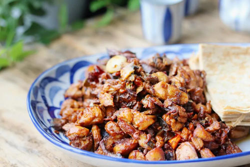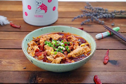 做法是:把熱油淋在蔥絲、蒜末、花椒、辣椒碎上。這時(shí)有嘩嘩的響聲,熱油易飛濺,要小心。