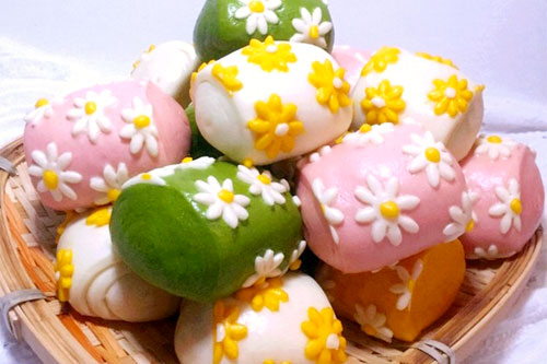 制作食材:白色面團(tuán):普通面粉 140克、水 70克、酵母粉 2克、白糖 10克、食用油 5克;黃色面團(tuán) 、南瓜泥 80克、普通面粉 140克、酵母粉 2克、白糖 10克、食用油 5克;綠色面團(tuán):菠菜汁 70克、普通面粉 140克、酵母粉 2克、白糖 10克、食用油 5克、小蘇打 1克;粉色面團(tuán);普通面粉 140克、水 70克、酵母粉 2克、白糖 10克、食用油 5克、紅曲粉 1克