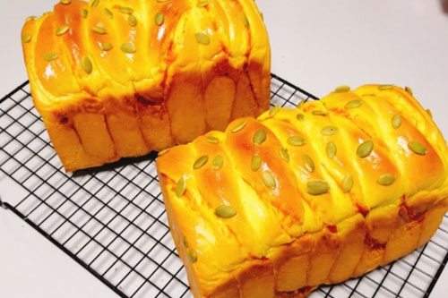 制作食材:高筋面粉 450克、細砂糖 60克、奶粉 15克、鮮酵母 15克、鹽 4克、雞蛋 1個(55克)、牛奶 152克、煉乳 50克、熟南瓜泥 100克、黃油 40克、 熟南瓜泥 120克、細砂糖 5克、玉米淀粉 8克