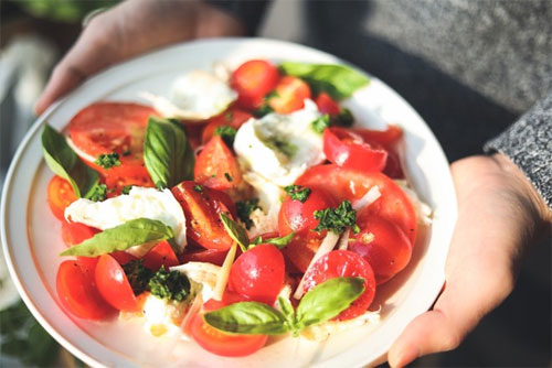 制作食材:新鮮羅勒葉 1打、橄欖油 5g+2克、西紅柿 3捧、水牛芝士球 250g、小洋蔥的蔥白約 3g、香草醋/葡萄酒醋8g、海鹽適量、現(xiàn)磨黑胡椒粉 1g