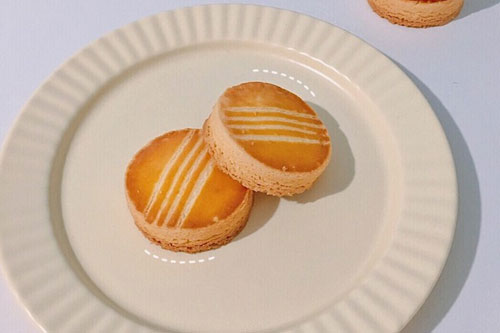 4、表面均勻刷上一層蛋黃液,待變干后再刷一層,用叉子劃出花紋,圓形模具內(nèi)側(cè)抹上黃油防粘,套模,烤箱預(yù)熱,160攝氏度25-30分鐘即可。