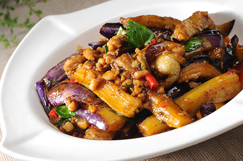 炒茄子時(shí),將切好的茄塊,茄片撒上鹽拌勻,攪15分鐘左右,擠去滲出的紅黑水,炒時(shí)不加湯,反復(fù)炒至全軟。然后,再按自己的口味放入各種調(diào)料,這樣的作法,既省油,又好吃。